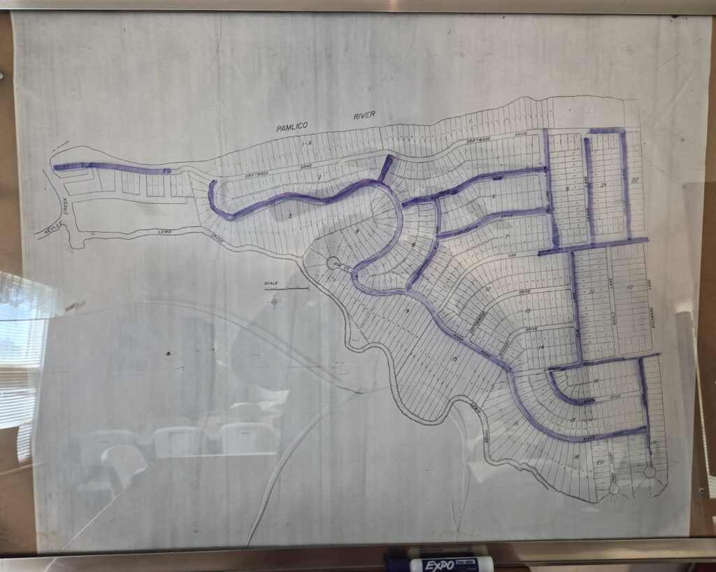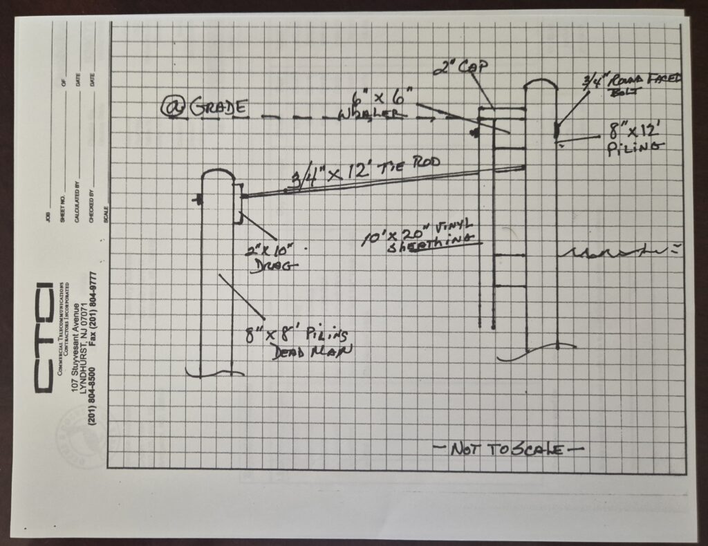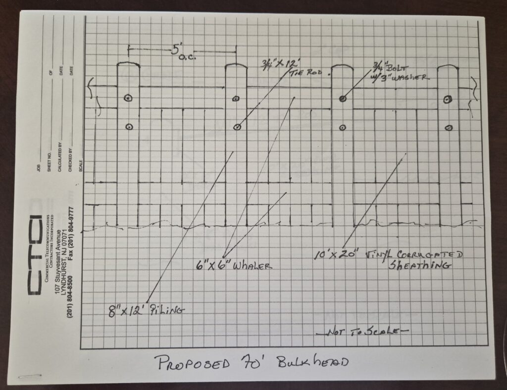 Drawing of the 70′ section of bulkhead we plan to replace in the section that runs alongside the beach pavilion. This is not an engineering drawing nor is it to scale. We hope to start on this Saturday May 2nd, our annual CBIC clean-up day. We will need volunteers for this and other activities in the community. We plan to start at 8:00 am.